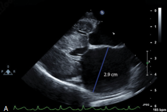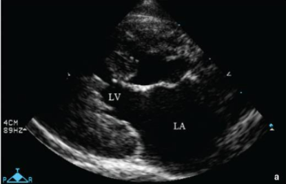 Việc đo đạc kích thước nhĩ trái (LA) rất quan trọng với bệnh lý cơ tim bên trái, bao gồm HCM. Tình trạng giãn nhĩ trái nặng đồng nghĩa mèo đã bị suy tim trái hoặc mèo có rủi ro cao bị suy tim trái. Điều này có thể dẫn tới tình trạng ứ máu và hình thành cục máu đông (Thrombus), thường xảy ra ở tiểu nhĩ trái (LAA) và có thể gây ra thuyên tắc động mạch (ATE).