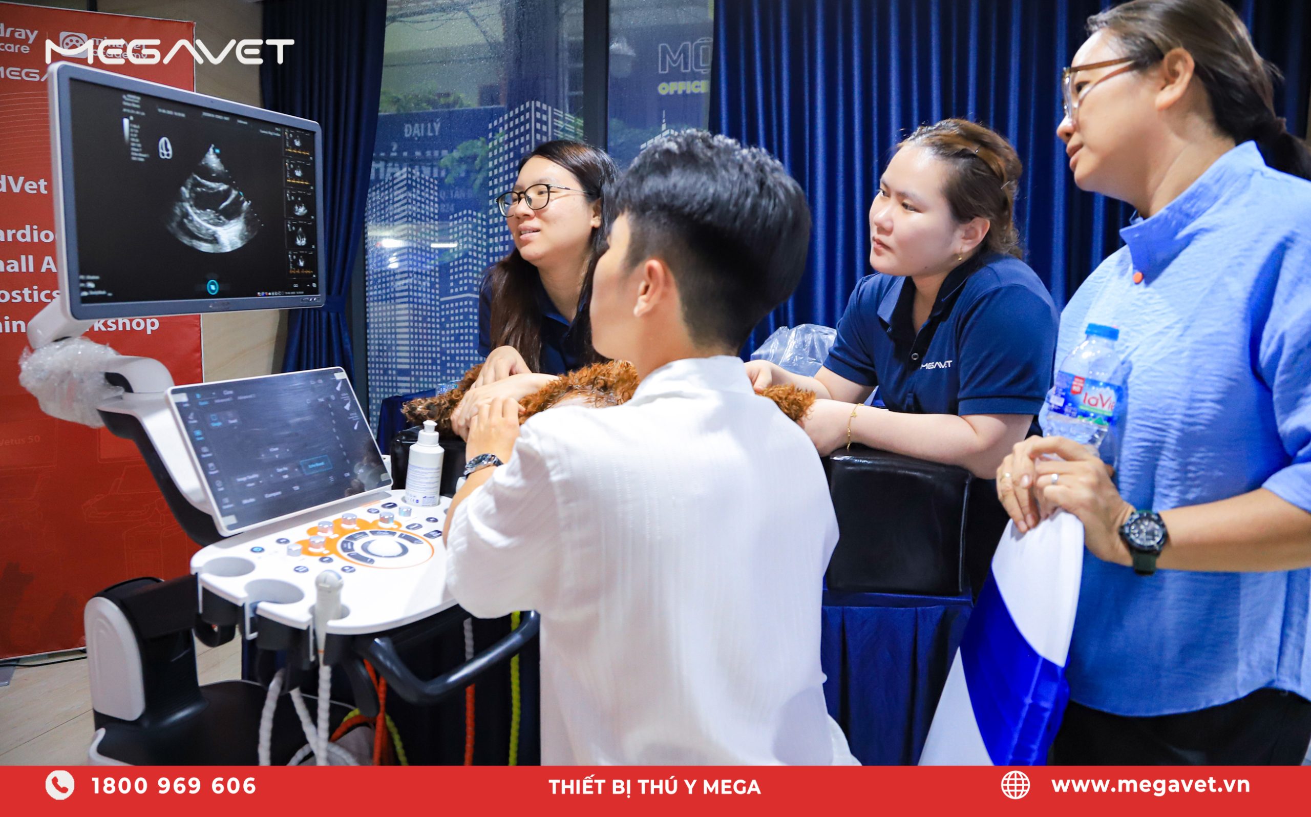 - 3. Thực hành trực tiếp trên thiết bị siêu âm tim Vetus cùng hướng dẫn từ chuyên gia và đội ngũ MEGAVET