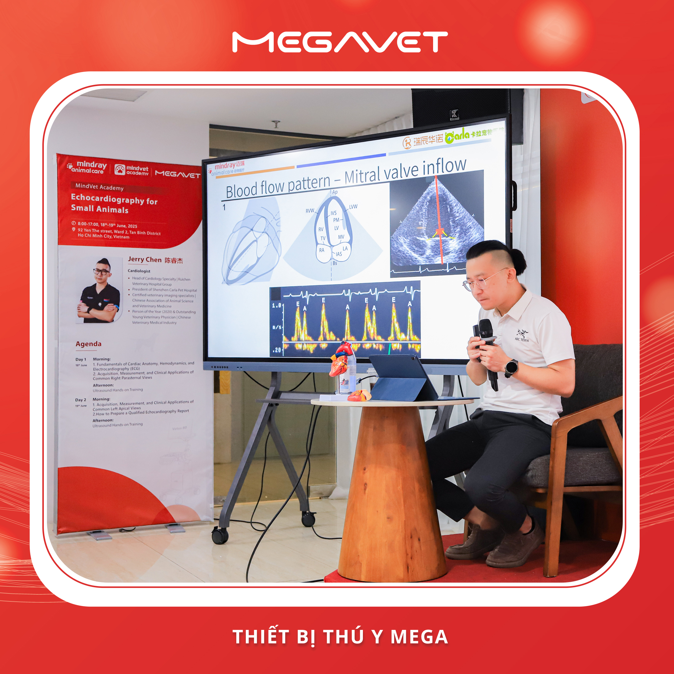 Hội thảo được điều phối bởi Dr. Jerry Chen – một chuyên gia hàng đầu trong lĩnh vực tim mạch thú y – với sự tham gia hỗ trợ đặc biệt của PGS.TS Lê Quang Thông. Dr. Jerry Chen hiện là Trưởng khoa Tim mạch của Tập đoàn Bệnh viện Thú y Ruichen và Chủ tịch Bệnh viện Thú y Carla tại Thâm Quyến. Ông được Hiệp hội Chăn nuôi Thú y Trung Quốc chứng nhận nhờ vào chuyên môn sâu rộng trong chẩn đoán hình ảnh thú y. Năm 2020, ông được vinh danh là “Nhân vật của năm” và “Bác sĩ Thú y trẻ xuất sắc” – minh chứng cho những đóng góp nổi bật của ông trong việc cải thiện chất lượng chẩn đoán và điều trị các bệnh lý tim mạch trên thú nhỏ. Đồng hành tại hội thảo là Phó Giáo sư, Tiến sĩ Lê Quang Thông – Trưởng khoa Chăn nuôi Thú y, Trường Đại học Nông Lâm TP. Hồ Chí Minh. Với vai trò đào tạo và định hướng thế hệ bác sĩ thú y tương lai, ông cũng là Chủ tịch Hiệp hội Thú y Nhỏ Việt Nam (VSAVA). Thông qua hoạt động của VSAVA, PGS.TS Lê Quang Thông góp phần quan trọng trong việc cập nhật kiến thức chuyên môn, kết nối cộng đồng thú y, và thúc đẩy nâng cao chất lượng điều trị thú cưng tại Việt Nam.